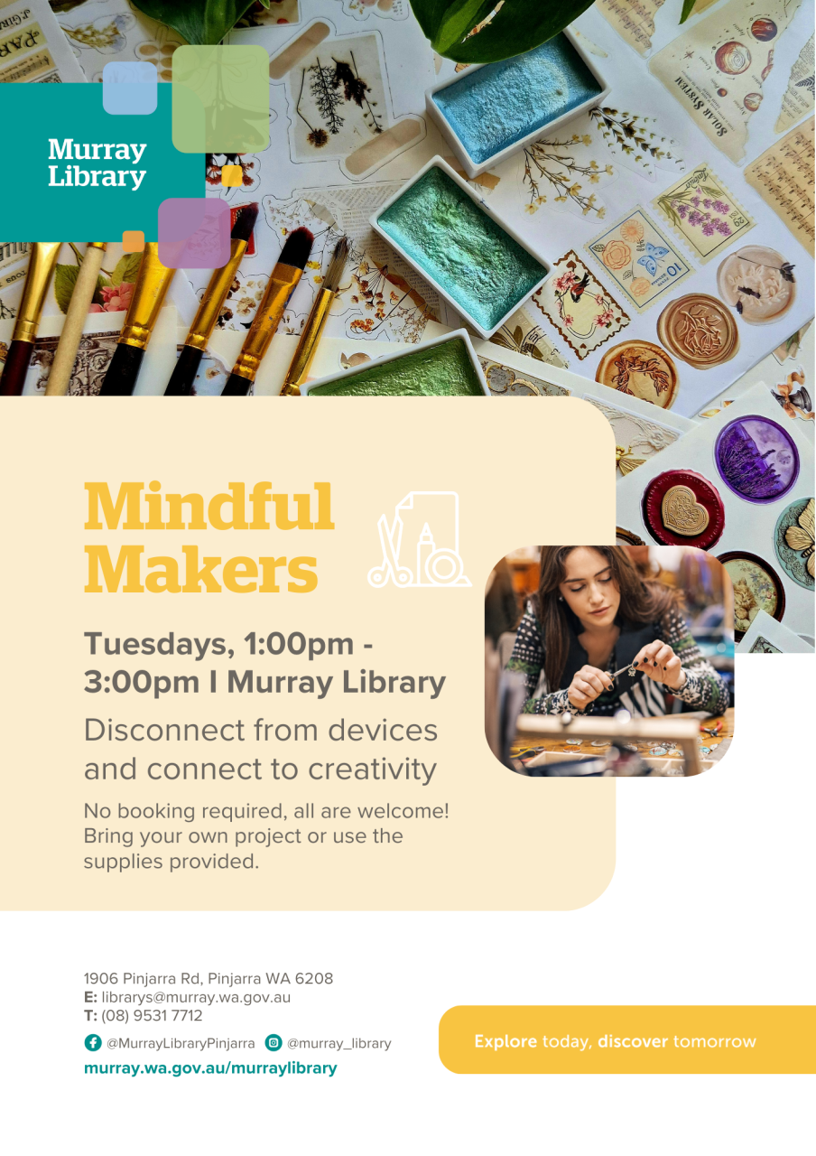 Mindful Makers is a space for you to step out of your busy week and into the cosy library to enjoy a time of creativity.