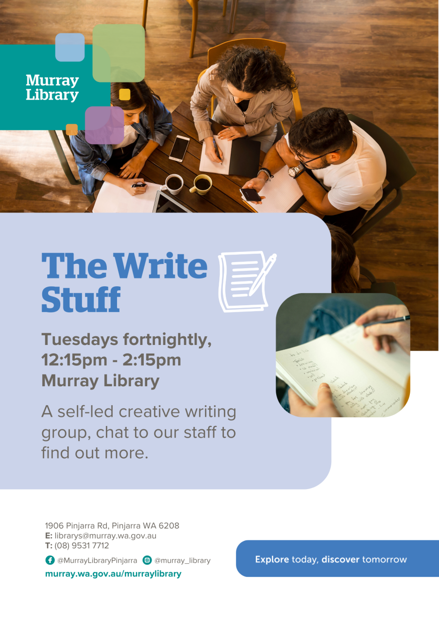 A creative writing group that meets fortnightly every second Tuesday from 12:15pm to 2:15pm in the Murray Library.