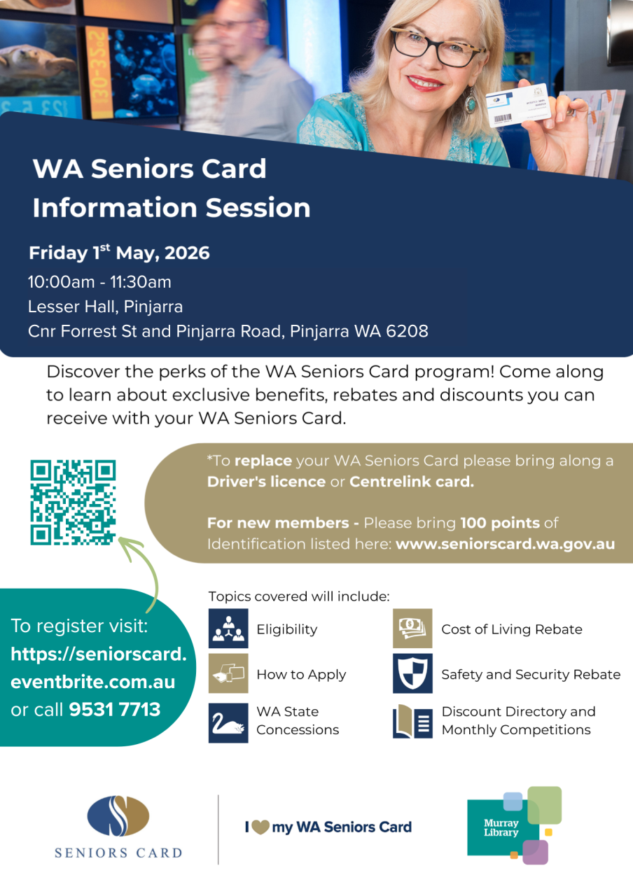 Come along to learn about exclusive benefits, rebates and discounts you can receive with your WA Seniors card.